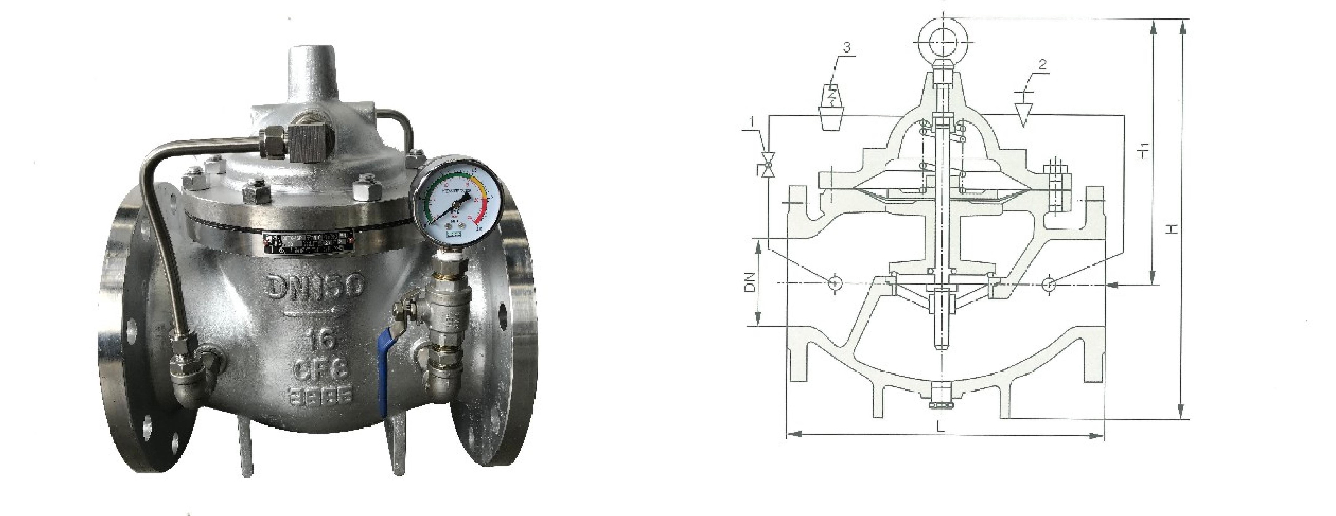 阀体采用了全通道流线型设计,流体阻力小、流量大,密封效果好。由于在主阀上配装了导管控制系统,利用水力自动操作,可使主阀盘得到最佳的开启或关闭速度,从而防止了水锤及水击现象的产生,以达到缓闭消声的效果。该产品是高层建筑给水系统以及其它给水系统防止水倒流的理想产品。
