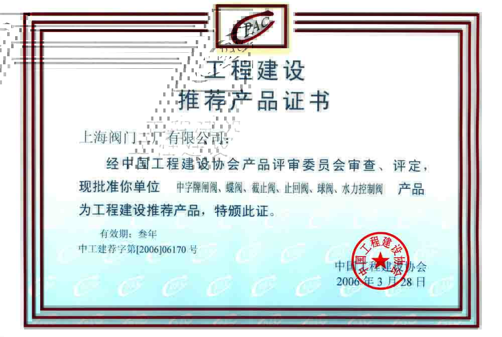 工程建设推荐产品证书(新)